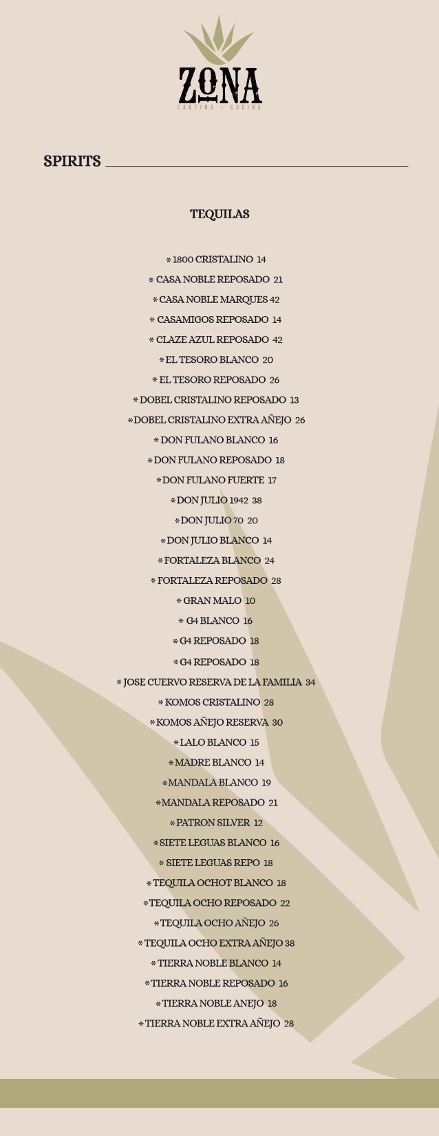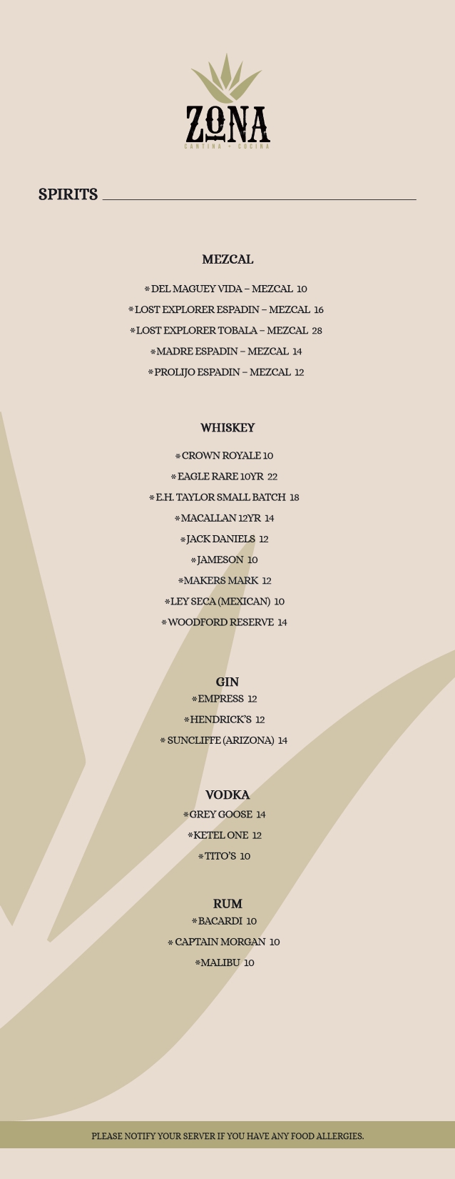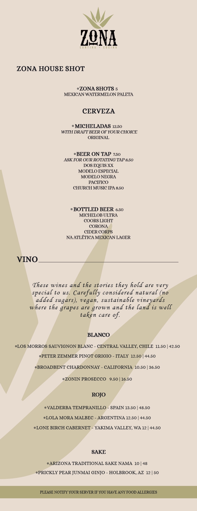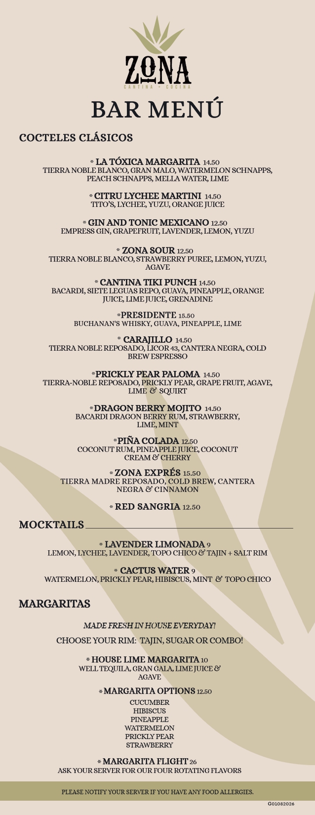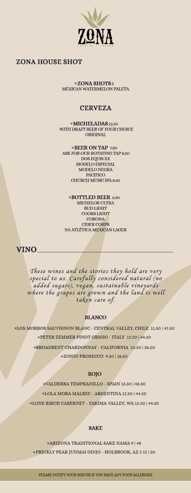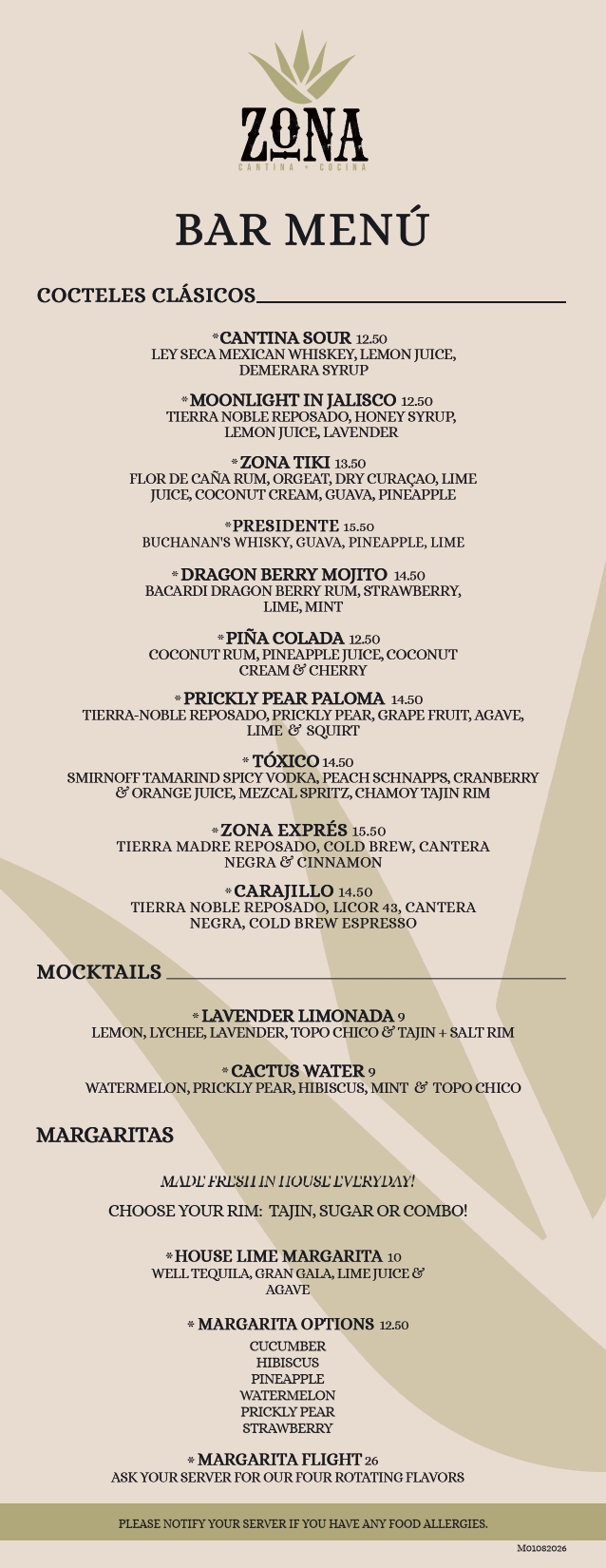 bar menu